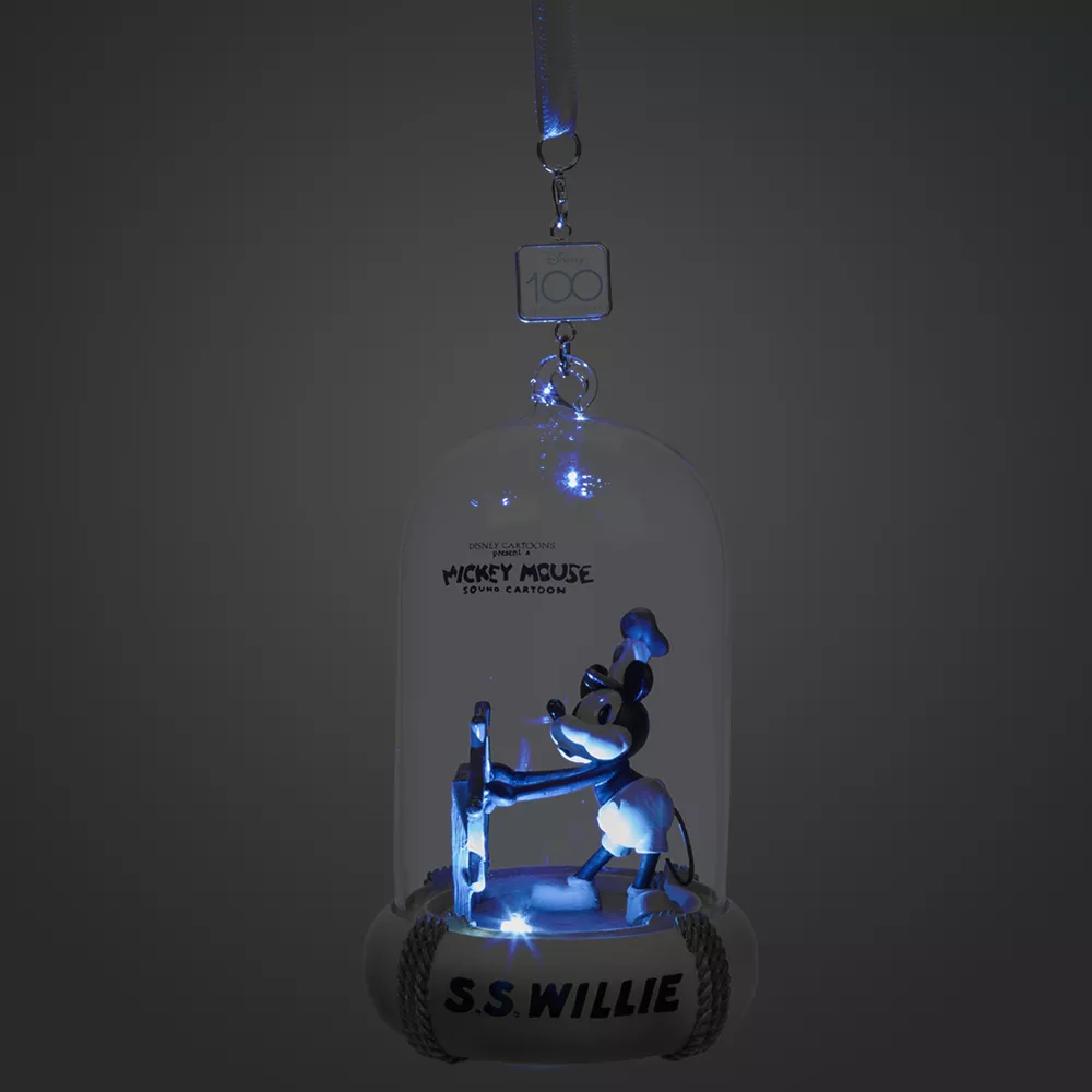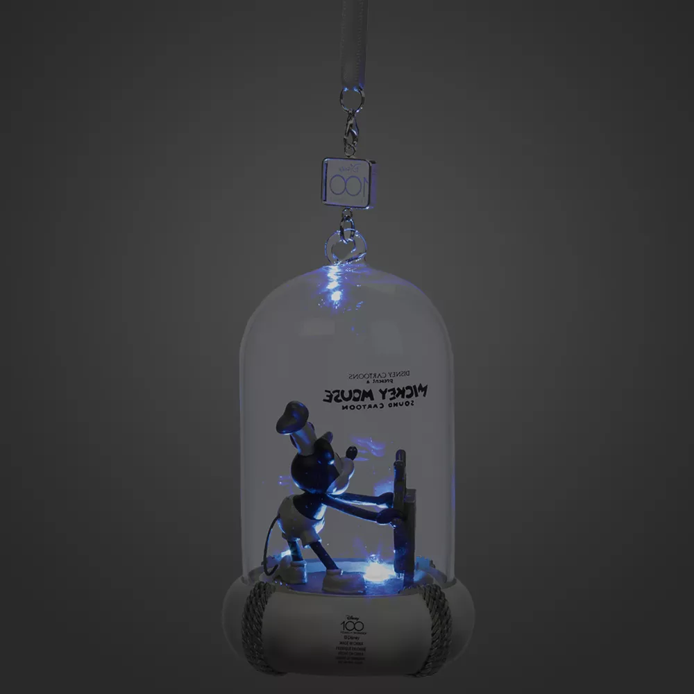 Mickey reprend son tout premier rôle en tant que Steamboat Willie pour cette décoration Living Magic Sketchbook avec effets de lumière et sifflements. Sous son dôme de verre transparent, la figurine intégralement sculptée de Mickey prend la pose près de la roue à aube.