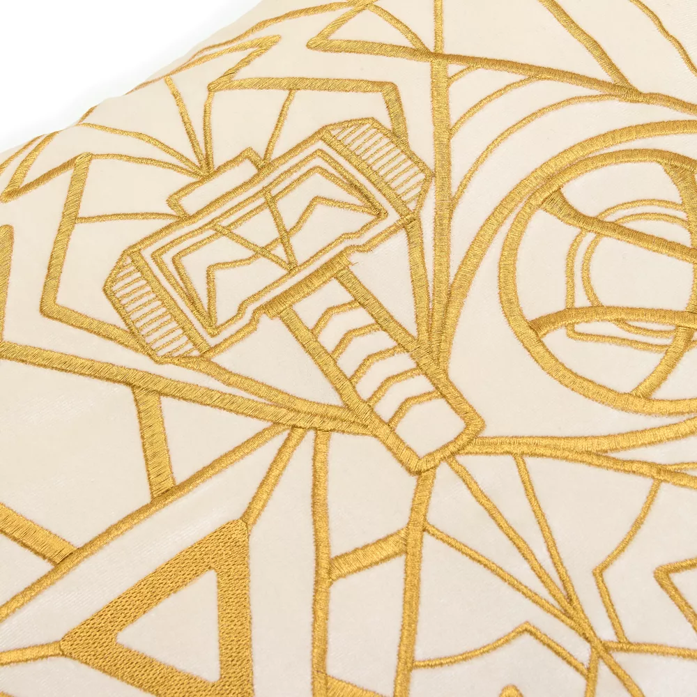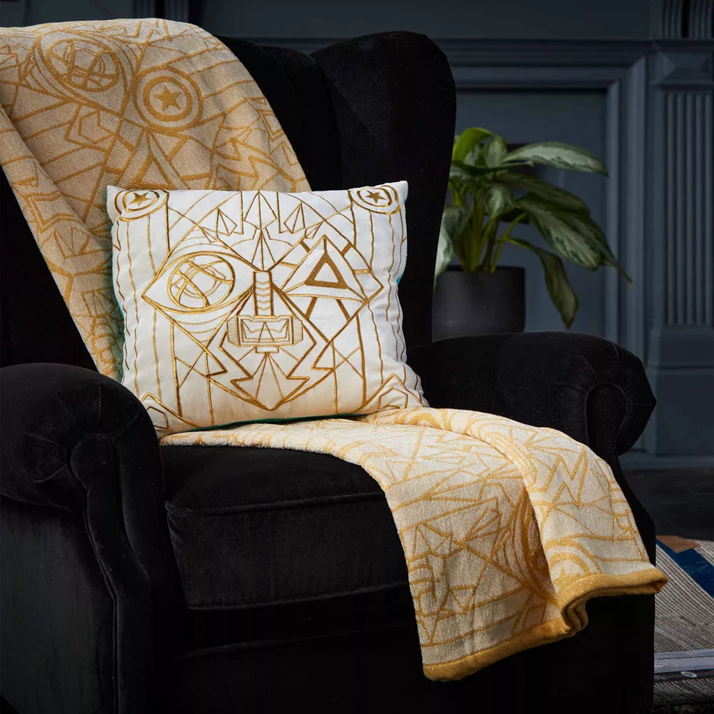En plus d’être particulièrement épique, ce coussin Avengers, avec ces borderies dorées et ses logos Avengers stylisés, sera un allié de choix lors des batailles de polochons.