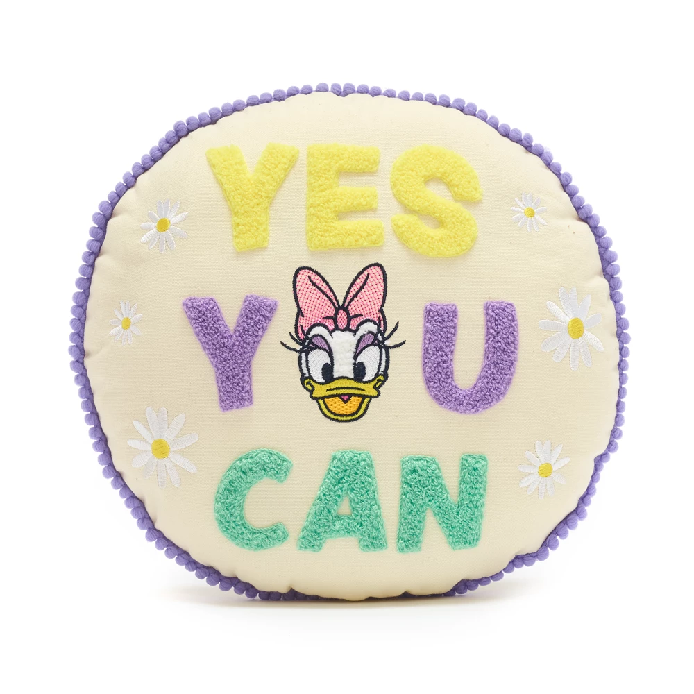 Daisy est toujours un gage d’élégance ! Ce coussin est décoré d’une inscription en tissu bouclé, d’un motif brodé et d’une garniture à pompons.