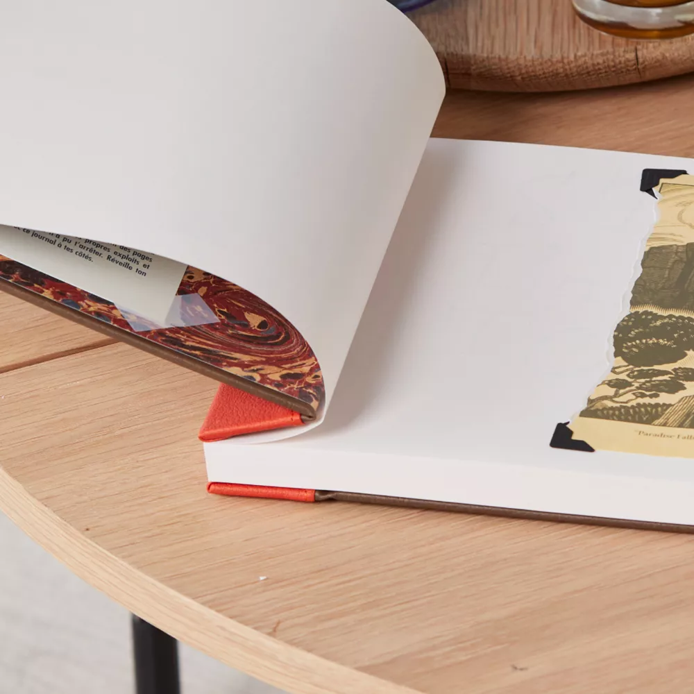 - Couverture rigide avec inscription brodée « My Adventure Book » (Mon livre d’aventures)