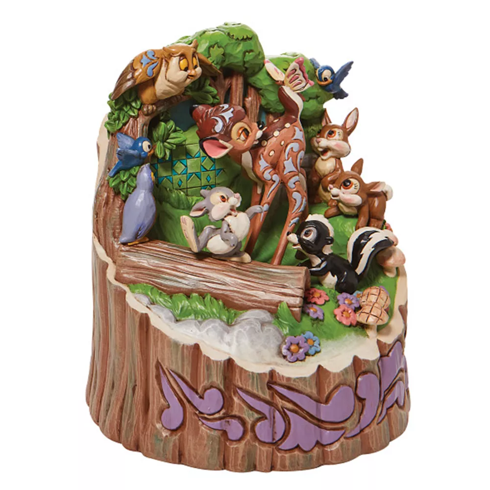 Célébrez les 80 ans du film Bambi avec les petits amis de la forêt. Cette magnifique figurine détaillée représente Bambi et ses amis Fleur et Pan Pan dans le style emblématique de Jim Shore.