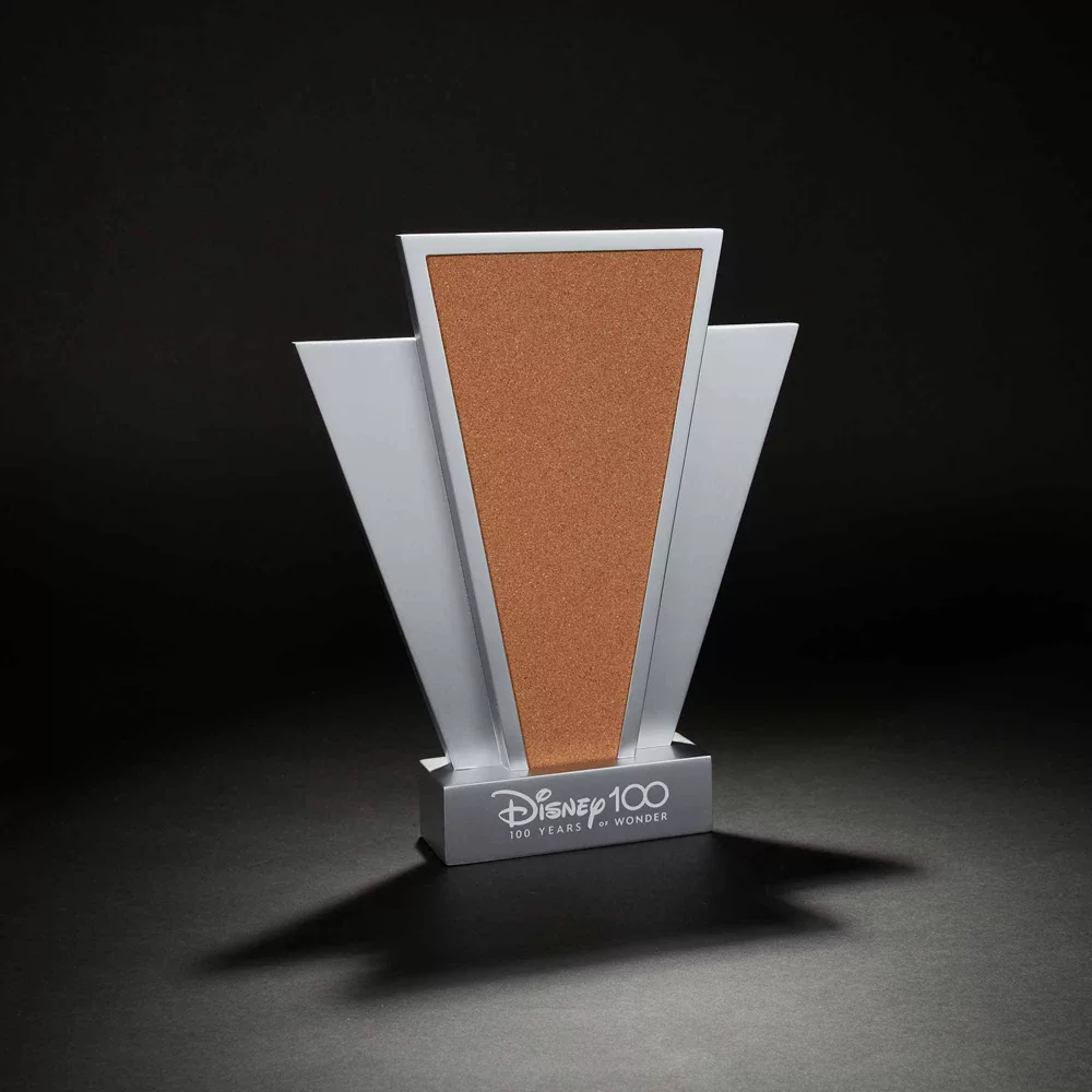Les fans de Disney peuvent exposer leur collection de pin’s souvenirs effet platine avec ce charmant présentoir en liège et son socle Disney100.